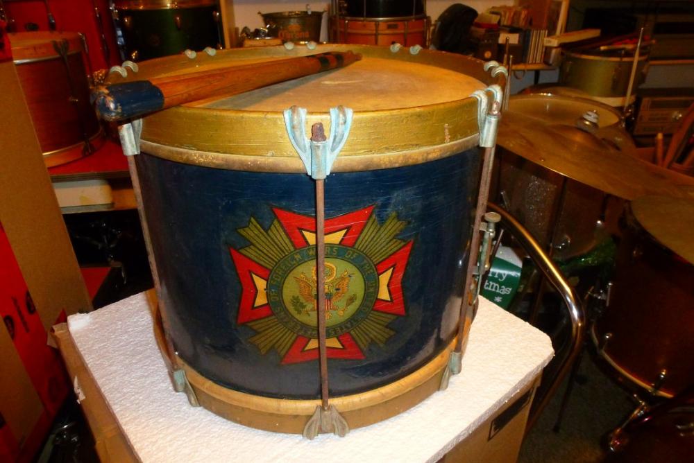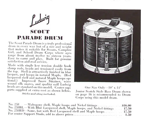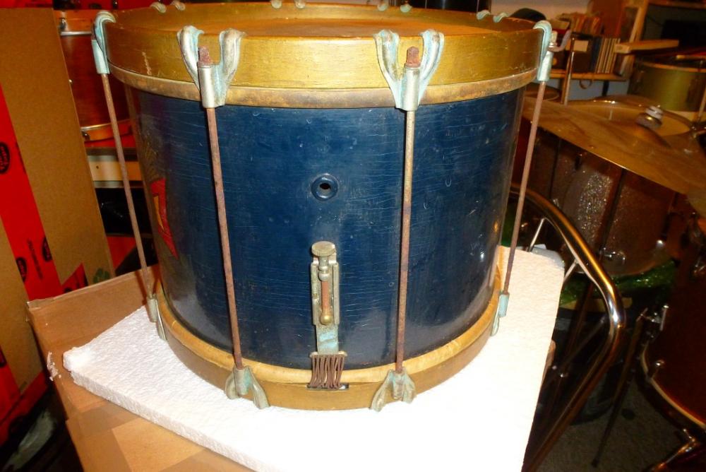 This arrived in the mail today - a nice little parade drum. Best guess so far is that it's late 30's going by the Strainer and then by the Transparent Crown-Head calfhide resonant head.....which appears to probably be original to the drum. I haven't compared the t-rod claws to any photos yet. Anyone here know or want to guess roughly what year the drum is going by the t-rod claws. strainer and anything else you can see?