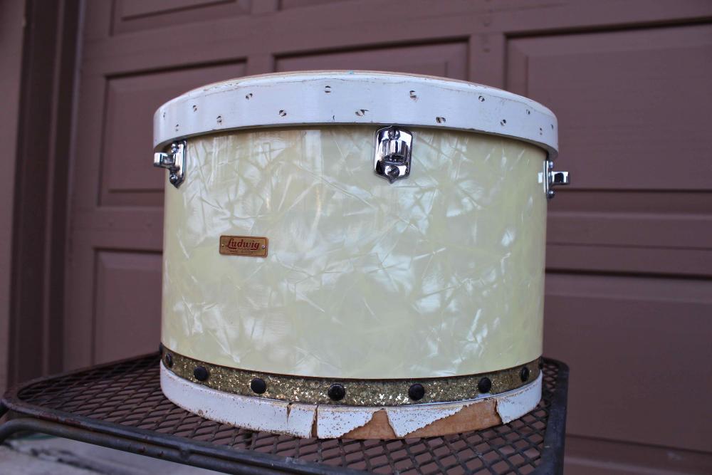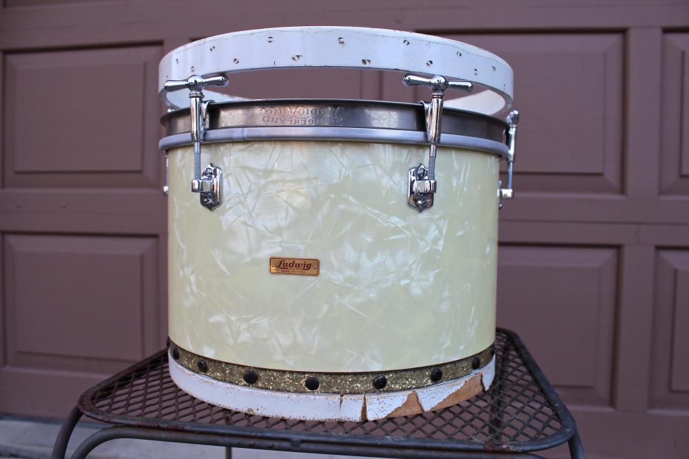 This Ludwig "tunable tom-tom" drum is in overall excellent condition, but both original pigskin heads are missing and need to be replaced. The original top wood hoop is included.