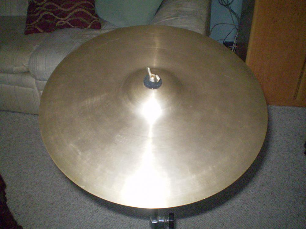 For sale is this unique dark sounding 14" Crash "Vibra Cymbals" made in Italy by Zanchi, F & F . It is one of their earliest cymbal lines made in the 1950's. It weighs 833 grams and has a 7/16" center hole. It is in very good condition without any cracks or keyhole. It has a nice hammering pattern and fine patina.