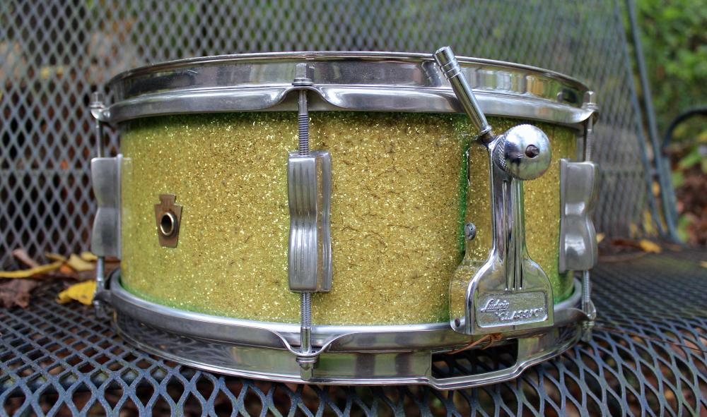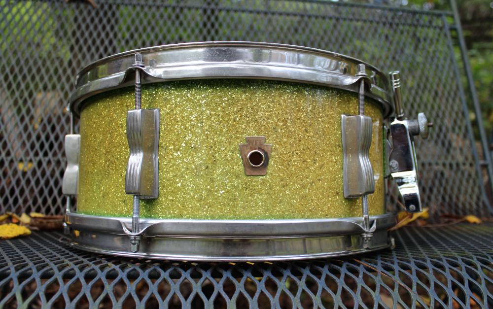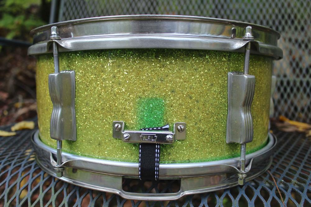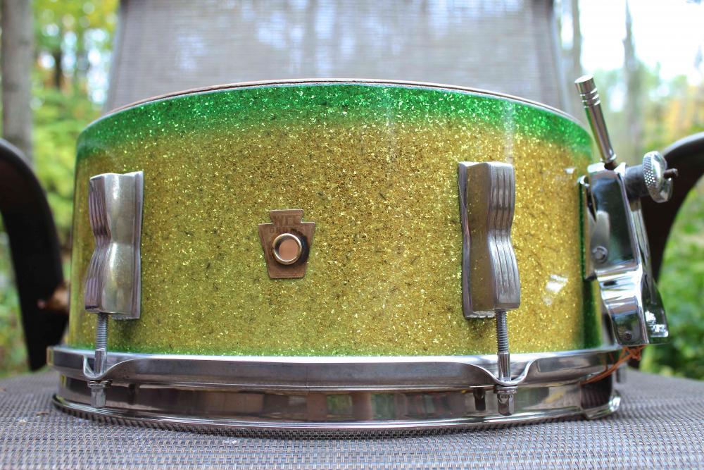 SOLD - Vintage 1956 WFL Ludwig 13x5.5" Classic Porto-Pak Snare Drum - Faded Green Sparkle - $275 + shipping