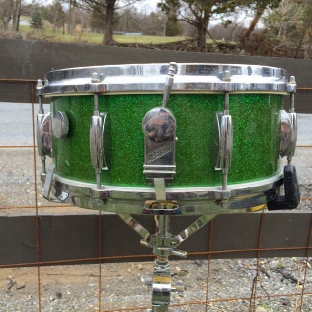 Vintage 60's Gretsch Round Badge model # 4157 5" x 14" snare drum in RARE green sparkle! -