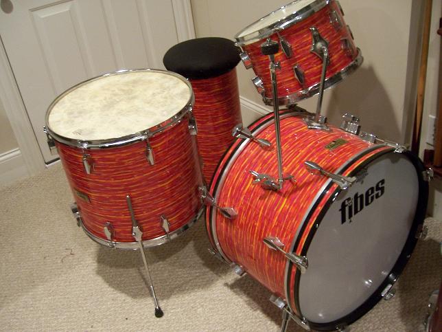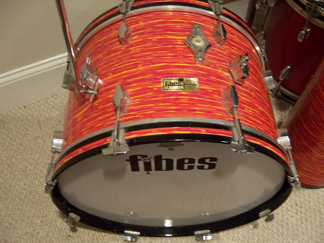 looks to be a rewrap in Jammin Sam's Mod Orange. Fibes never had a Mod Orange wrapped finish. Also, look at how the bass drum badge is all ratted up. Evidence it has been removed and put back on (and a crappy job too!)
