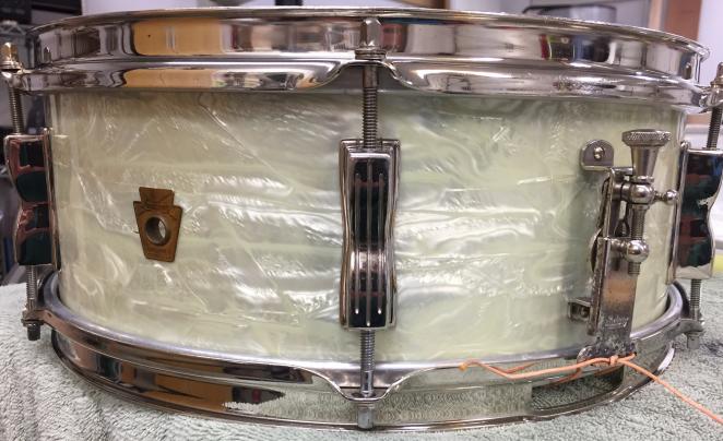 I just acquired the below pictured 1962 Pioneer snare. The rims are chrome over brass (my assumption since they are non-ferrous). The little beauty was apart when I got it. After cleaning and assembling it (with non-Ludwig tension bolts on the bottom) I noted that the holes were not lining up very well between the top rim and the lugs. Some were off to the left, some to the right. But all were able to be fastened without a problem.