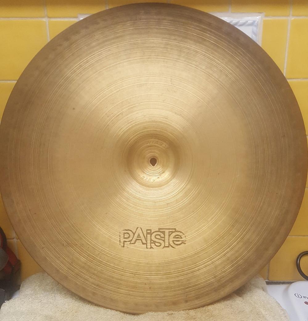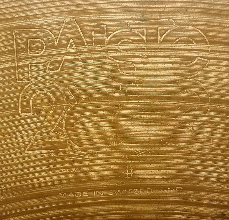 Zenstat is correct. And just an FYI, if you ever come across any vintage Paiste cymbal, just take a look at the first digit of the serial number. The first number indicates the second number of the year of manufacturing. So for example, if there's a six digit serial number like 768894, the year of manufacturing would be 1977. A seven digit serial number would indicate a modern cymbal.