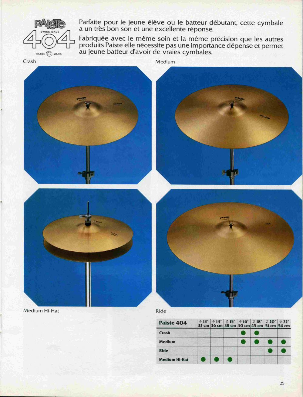 You have a set of black label 404's which were manufactured in 1974, and the brown labels from'78-86.. I have a set of brown labels from 1983, that are in mint condition, like "new old stock", and bought them off some kid who sold them to me for $30 Cdn. dollars ! I also had a rare set of black label 404 15" hi hats, which i sold like an imbecile..They are worth a lot more than that, at least to me and many other 404 fans..These cymbals are gaining momentum as collector's cymbals and are getting few and far between..