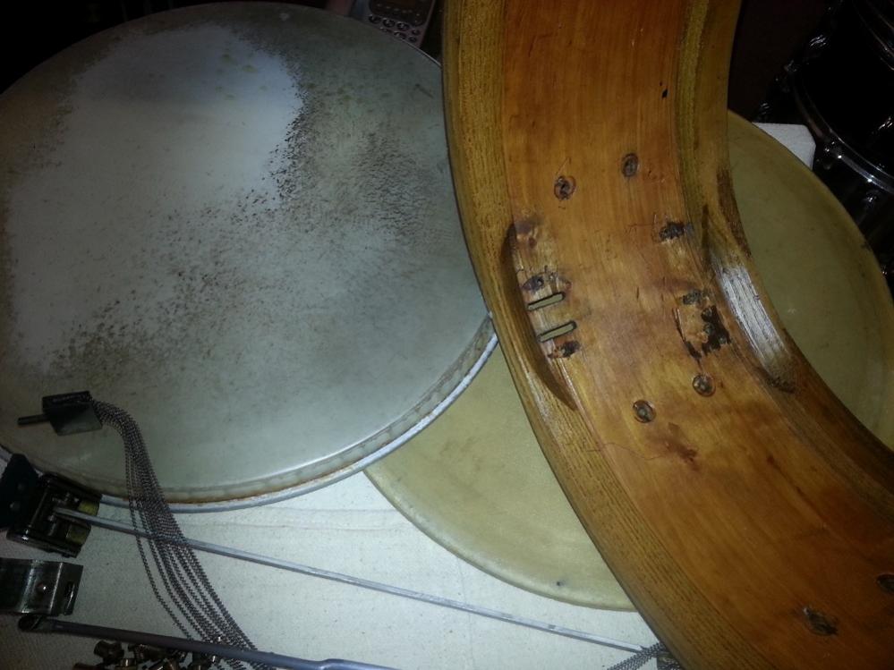 Thanks Oddball......The snare before i took it apart sounded amazingly good. The inside of shell was dried out so i lightly oiled the interior with olive oil. The outside just a soapy wash to get dirt off then finally a polish with bees wax. Another trick i learnt was to soak metal nuts bolts etc in white vinegar even tension rods. Done that for two days wow they look 70% better already. The hoops will just be quick soapy wash and usual metal polish nothing abrasive. When finished ill do a sound file. With the drum apart from the K Zildjians mentioned i also got a 22" Ajax which sounds awesome plus a 20" Zyn with rivets again a great sound.