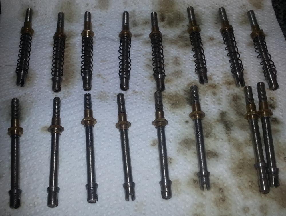 One note on white vinegar never put cast parts in, ive done it, it eats em alive. Only brass steel etc. Tension rods and washers chuck em in for approx 2 days. Rusty washers nuts bolts anything thats bad rust chuck em in for 2 days empty then repeat. I then spin em on a drill to bring them up like new. Sometimes they look pitted but once cleaned up they maintain the originality original.