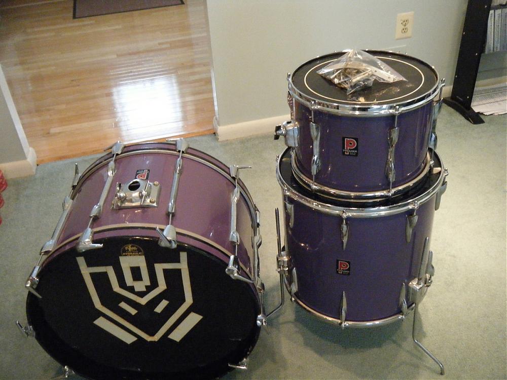 Selling for a friend. The bass drum has holes where I believe the original owner tried to take them out but did a bad job. Real African Mahogany with Beech rings. Kenny Clare. I cleaned them up a little bit and installed regular tension rods on the 16 tom so the rods would all be the same length. I'm including the original rods plus the mufflers. Die Cast Hoops. This even has the original everplay heads on the bottom of the toms. $300 shipped to the lower 48 states. Great for the vintage enthusiasts or refurb project! Email [email]favilaem@gmail.com[/email] if interested.