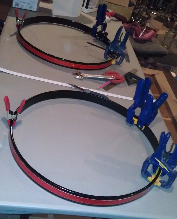 I got the inlay on the hoops glued and clamped.