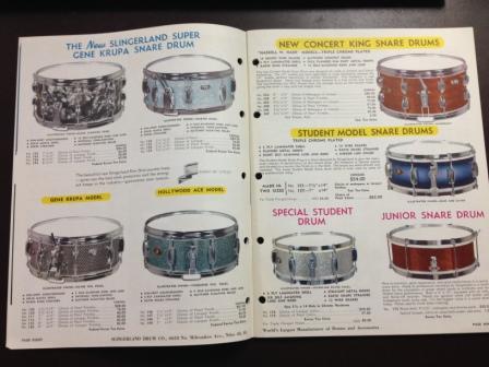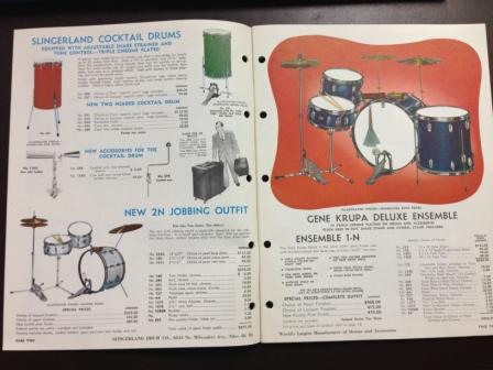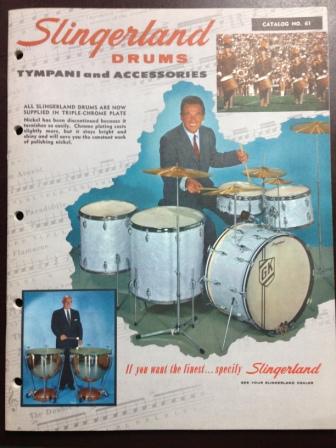 Just listed this on EBay. Vintage early 1960's Slingerland Drums, Tympani and Accessories Catalog. Catalog #61. Catalog is in excellent condition and features the full Slingerland lineup. 41 pages. Beautiful piece of vintage Slingerland Drum history. Free shipping. Opening bid of $40 and buy it now price of $65. More pictures on EBay.