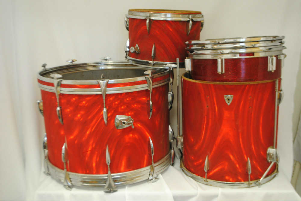 Hi all - I saw, I thought, I struck! Bought these drums today and would like some help identifying them. They've yet to arrive, but they look like Sonor (to me), late 1960s if I'm reading the catalog right. The shells have a gray painted interior. Lug casings are offset. Missing a few parts here and there - i'm sure that will be a challenge finding parts - but I'm thrilled to get started restoring these.
