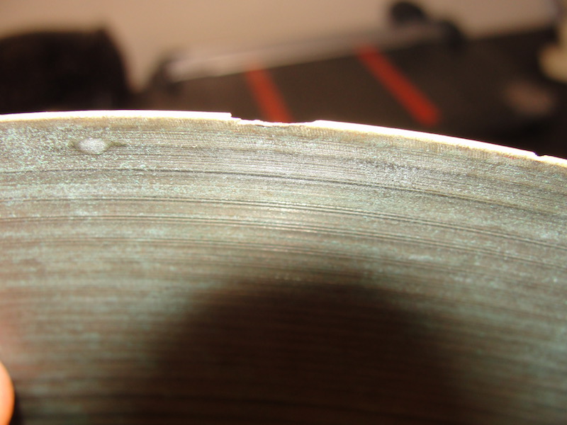 This cymbal has spiderwebbing at the center hole. The longest crack is less than 1/2" in length. I just got this cymbal, so I cannot tell you how long the cracks have been there or if they have lengthened over time. There is one small chip out of the edge of the cymbal, and one very small dent on the edge as well. Additionally, you can feel some roughness around the edge of the cymbal. The cymbal weighs 885 grams. Please examine the photos carefully, and request more photos of interested.
