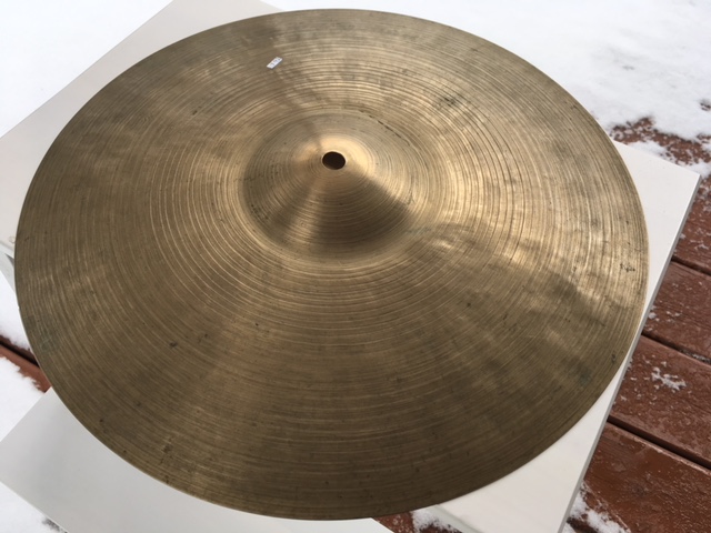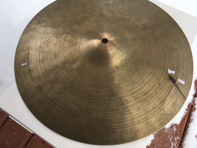 Here is a set of 13 1/4" K Istanbul HiHats that weigh about 726 and 792 grams. The 726 is cracked. The Stamp on both is the same and I believe it’s the old one. The lathing patterning on the top and underside of both match up, as does the hammering. The weights are similar and sizes are almost identical so I suspect they were purchased as a matched set. They have some roughness at the center holes but no hole cracks or keyholing. Both cymbals have the expected patina, scratches, stickmarks and discoloration.