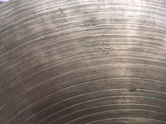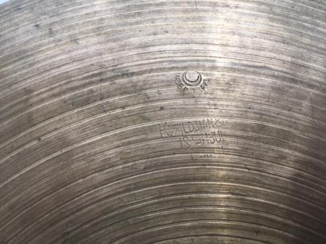 There are two edge-nicks on the 792 cymbal. I have tried to show these in the close-up pictures but they are very small. This cymbal lies flat with no waves or dents. The underside shows craftman’s signature and “Medium 13 33cm”