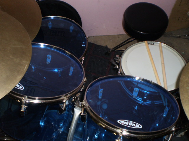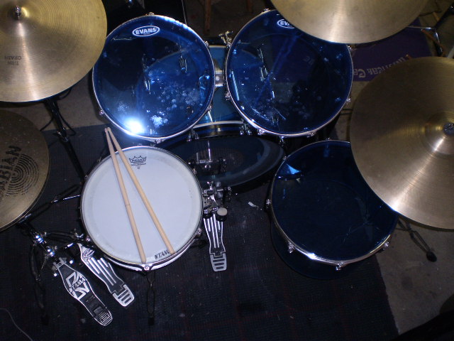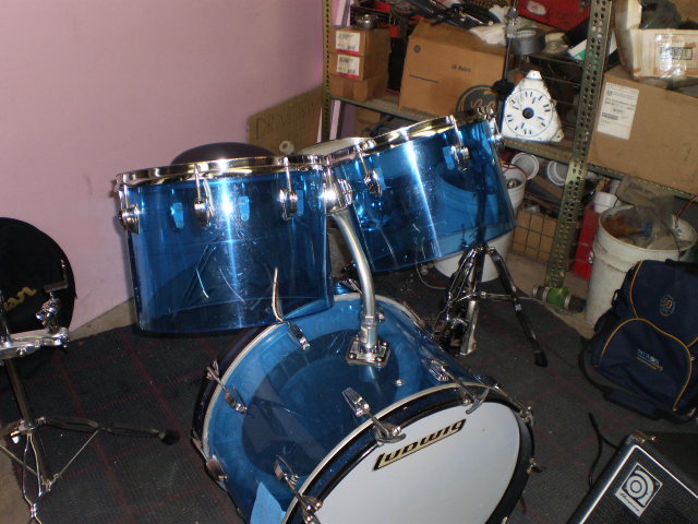 My friend had a few Vistalite toms so I worked on a project to complete a kit out of it. They're 13, 14 & 15" concert toms, 22" bass. I used a piece of flattened out conduit for the bass drum dual tom clip mount and a Tama attachment on a cymbal stand with a cowbell holder part for the clip to hold the 15" tom. Here's pics,