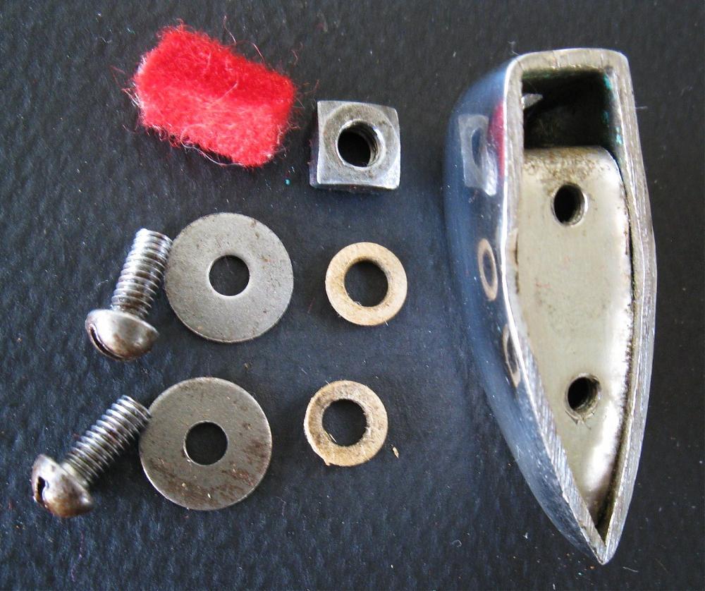 The Voss/ Tromsa lugs had a simple hardware nut held in place by some sponge. The sponge had long since degraded into powder, so I used pieces of piano felt instead. Reassembling the drums was tricky, because the oversized nut compartment allowed the nut to move around, & it did not stay in a horizontal plain in order to receive the tension rod.