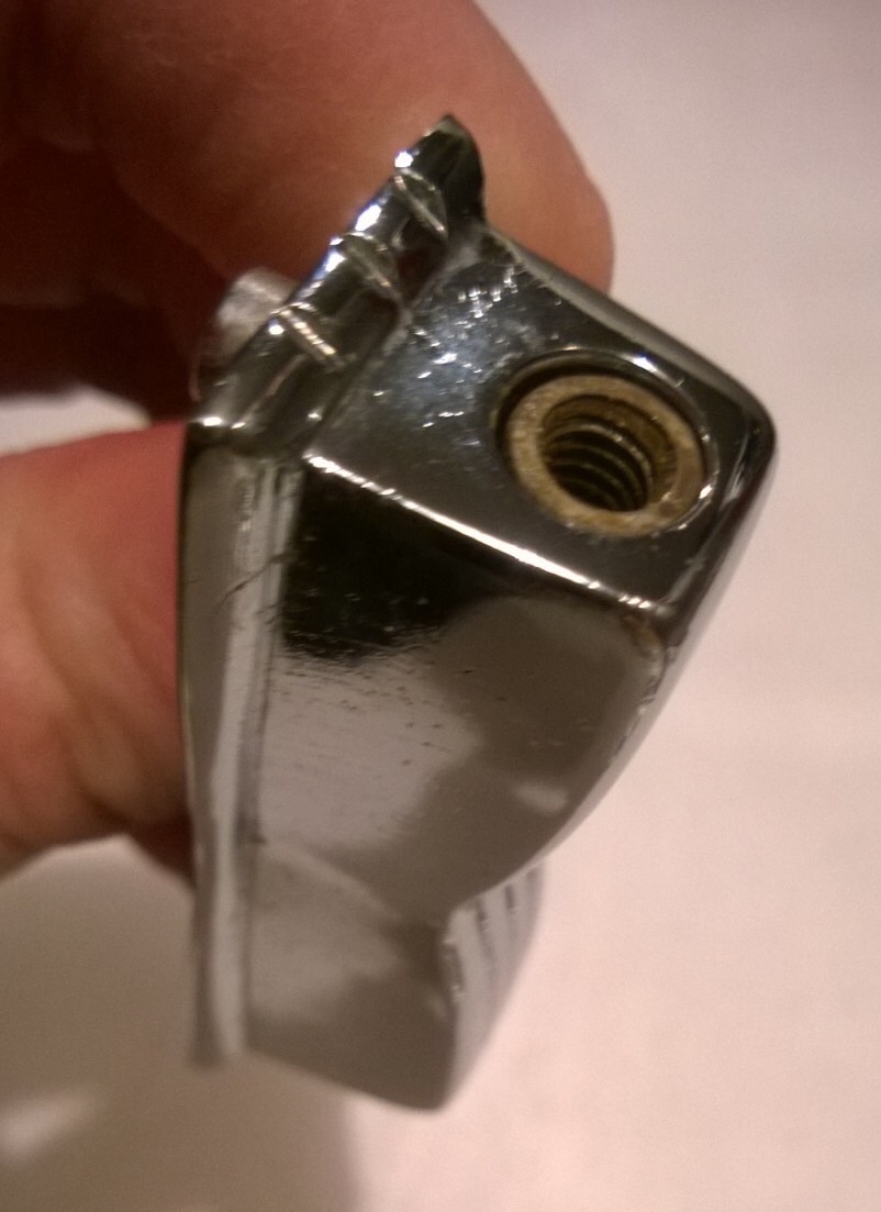 Unfortunately, one of these brass swivel nuts stripped out on me and I do not have any spares. I'm looking for a good brass replacement for the standard bowtie lug for a jazzfest size lug. It mounts flush with outside of the lug casing as shown in the picture.