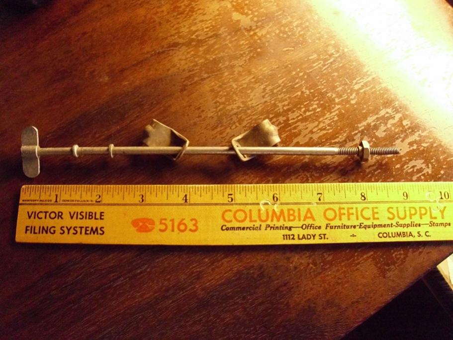I've got a mid 30's Ludwig Juvenile Parade drum that I am working on. I am in need of three of the long tension rods with the thumbscrews. I also need six of the small claws, 3 nuts and three small washers. I am attaching a pic of one of the assemblies. So essentially, I need three of these. Any will help. They measure just under 9 inches end to end. Please pm me here or email to [email]mikelayton@bellsouth.net[/email] if you have any or any leads on them. Thanks!