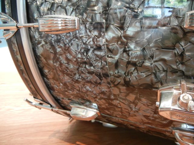 I did a patch up job once on a 1960's BDP Ludwig bass drum.The picture is showing exactly what the fellas are talking about,…The color and pattern are looking an awful lot like some of the pictures on Jammin Sam's website,…http://www.jamminsam.com/quarantine/index.php/drum-wraps/pearl-drum-wraps/56-black-diamond-pearl-on-drums.html?start=3