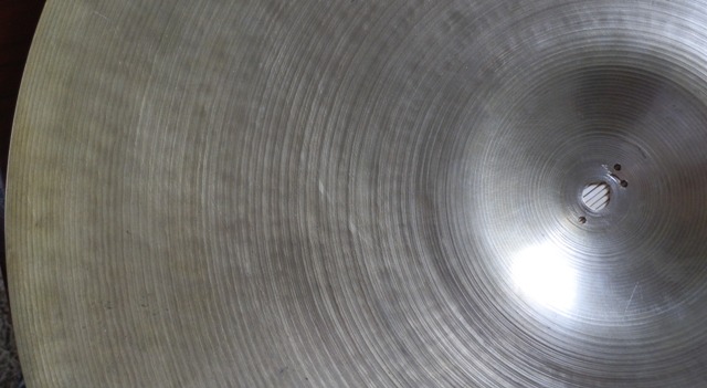 I think what Mike was thinking is that one of the three dot stamps could possibly be a 1954 stamp. Although this is unlikely it seemed a good idea to rule it out. The thing to look for there is whether it has obvious hammering on both the top and the bottom. That's the giveaway, because in the mid 1950s they were still doing lots of hammering on both sides which tended to stay visible in the finished cymbal. Which brings me to the other thing to check out to tell a 50s from a 70s cymbal. Some time during the 1960s the hammering seemed to be done only on the top. At least, it only appears on the top in the finished cymbal. So, for example, if that 18" kh looks absolutely smooth on the bottom (no hammering visible at all) then that is more of a 1970s style. The visible hammering on the top also has a more systematic look to it in the 1970s than the 1950s. Again that is a product of changing production techniques. I'm still working on collecting up examples and writing up a specific section on hammering. You can see some hammering shown in the gallery, and it is also worth looking at the 1960s hammering example in the New Beat section: