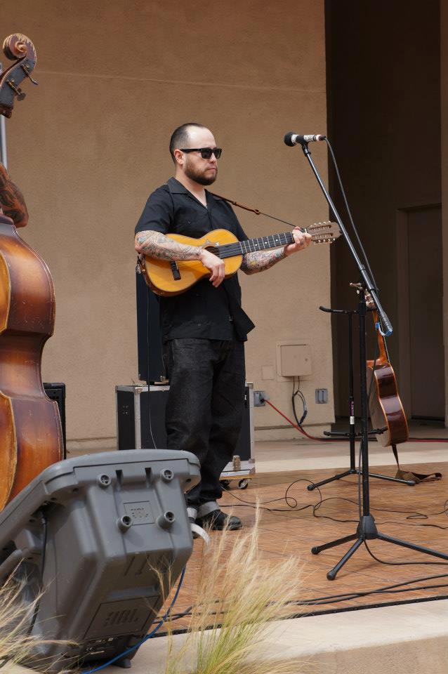 Cool, John. I picked up acoustic guitar around 10 years ago, mostly because the band starting playing acoustic traditional Mexican tunes and I didn't want to stand there with shakers! The acoustic guitar I'm playing in the pic is called a jarana. It's used in traditional jarocho music from Veracruz. I can't play any leads to save my life...just rhythm. Funny thing is that I've had a couple of different drummers tell me I was easy to play with on upright bass...and of course that's because I'm a drummer!