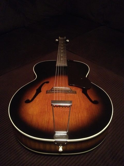 Dang, that's a small guitar Aaron! Looks more like a quatro. I bought a Pawn Shop Premier acoustic made in 1966. I'll post a pic for you later. It's cool, abalone inlays, rosewood fretboard, looks a lot like a high-end Martin. It has a great tone and 'sometimes' I can actually stand my own playing because the axe sounds so good by itself. I just love music, period, punto.
