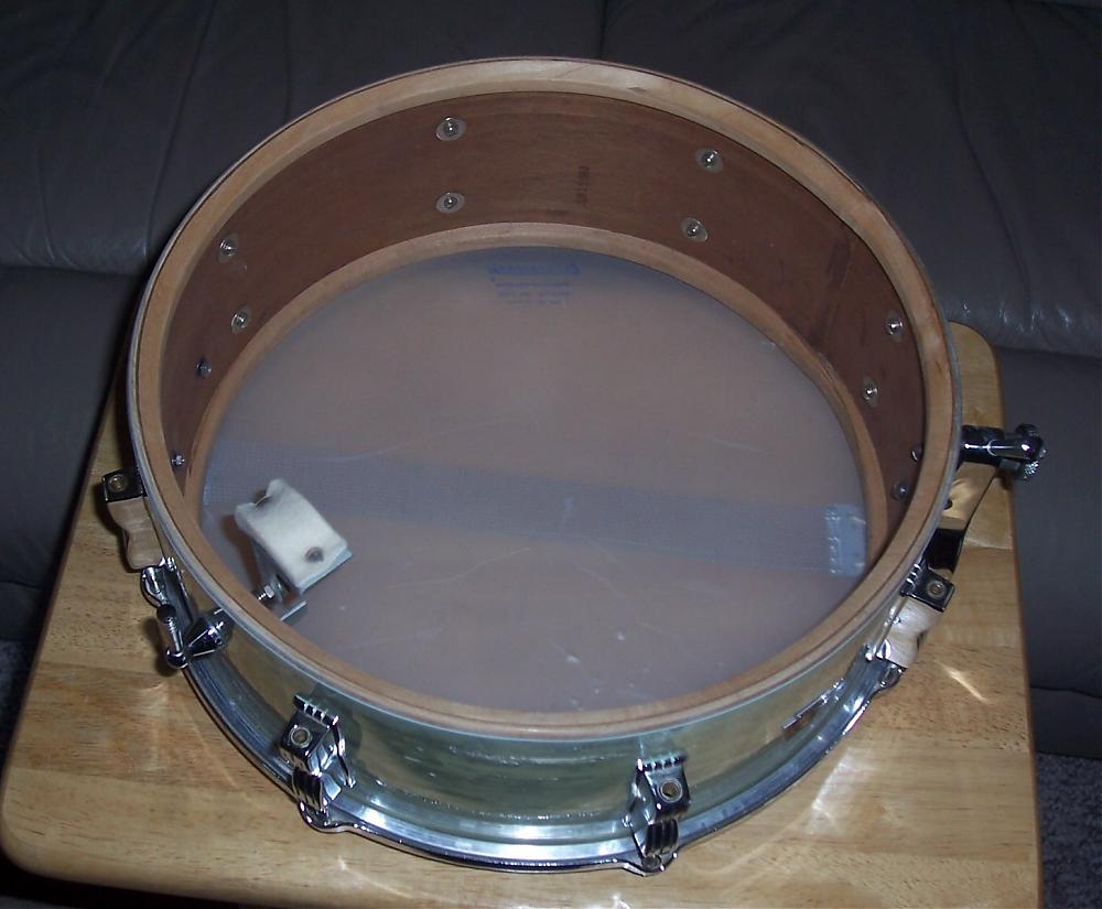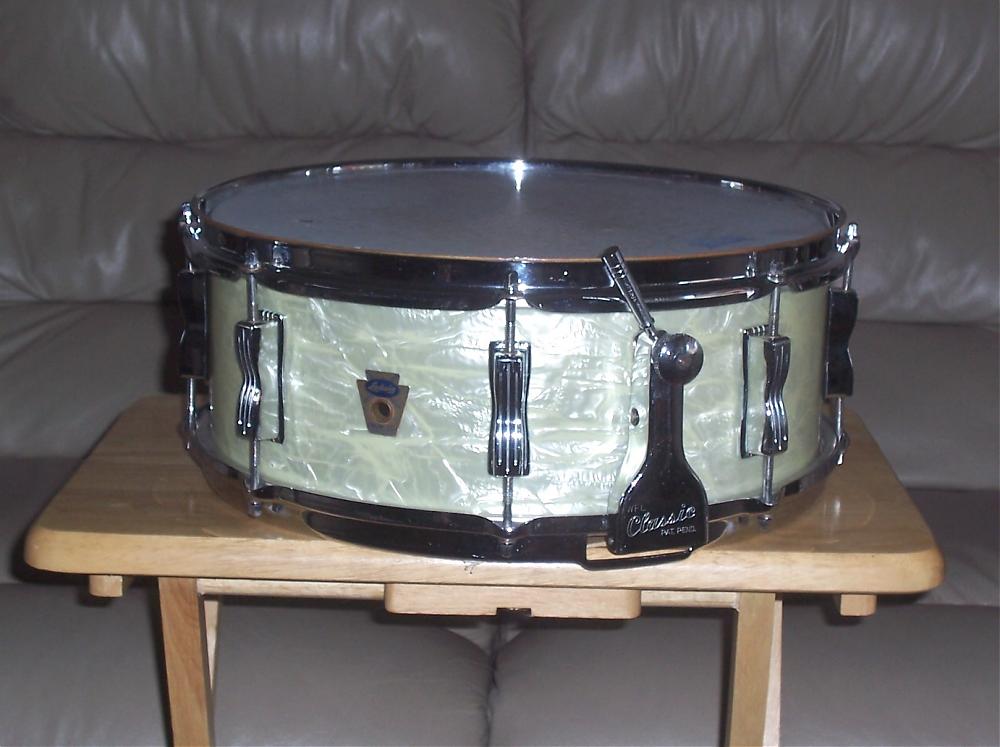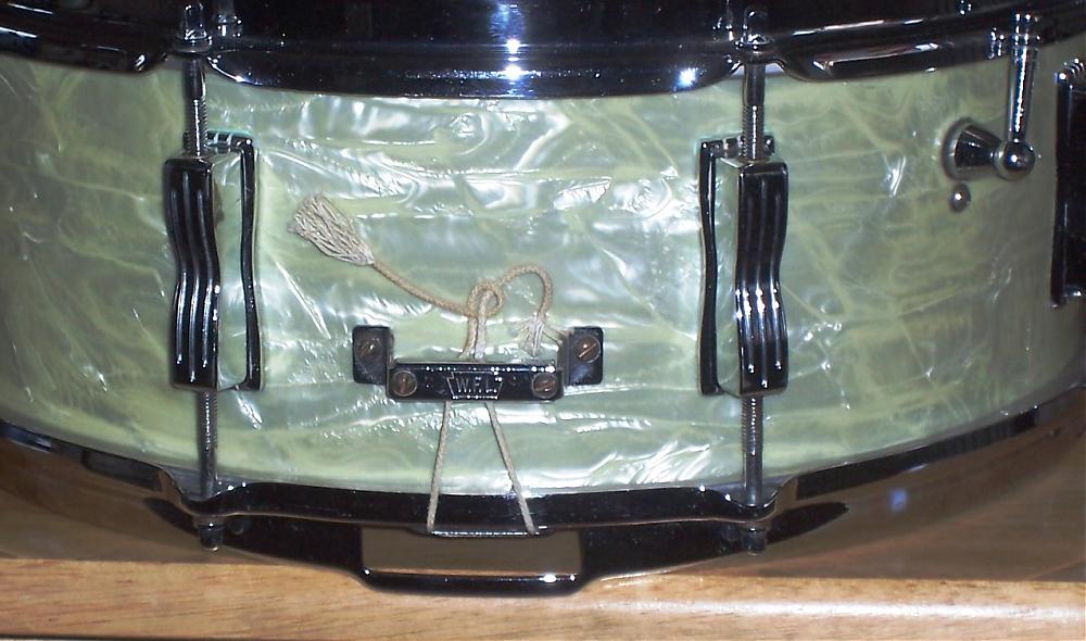 TommyP was kind enough to send a pic from his 1955 WMP Super Classic which features the keystone badge, dial-tone muffler and an "elevated" (if that's the correct term) snare butt. However, the drum I'll be getting that I'm trying to determine the correct muffler for, has the transitional keystone badge, is date-stamped June 1959 and DOES NOT have the same snare butt hardware.
