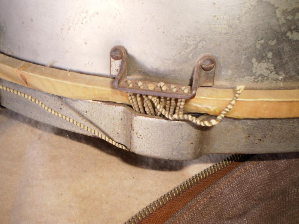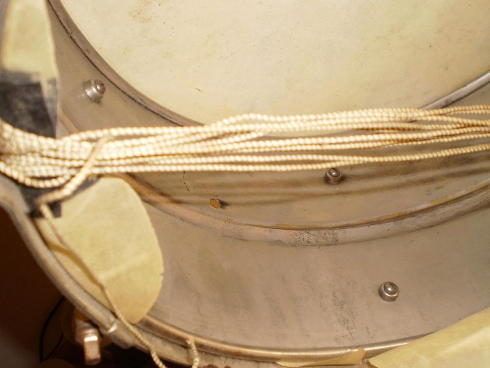 Thank you Mike Curotto. Maybe someone didn't have long enough vintage snare cord and modified it or it was done factory because of the 6.5" depth? There was a nice threaded type half round nut that fit in the bead for the screws.