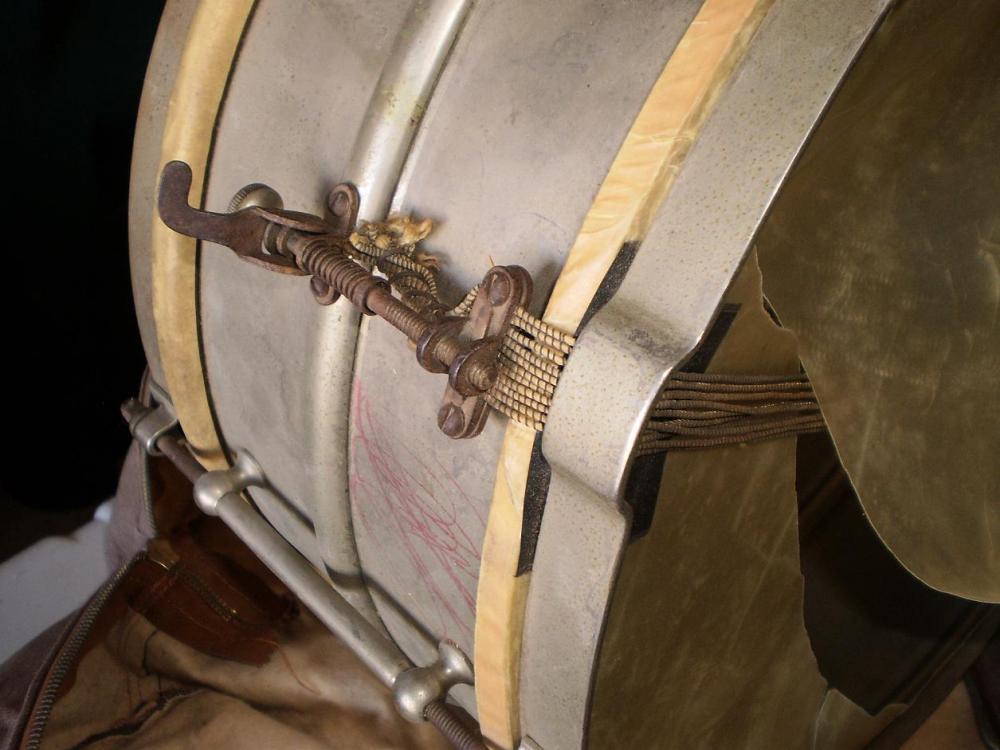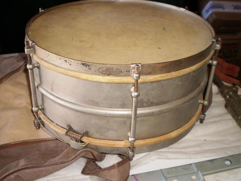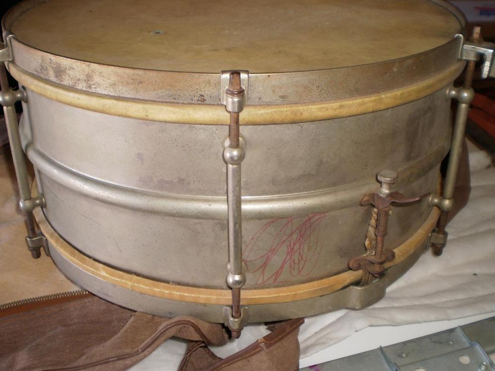 here is a pic from the 1928 catalog. it shows a universal with the strainer like yours mounted on the hoop. not saying your drum is circa '28. just wanted to provide you with a pic.yours appears to be a 6.5 model. you'll notice that the 6,5 depth was not listed in the '28 catalog.mike
