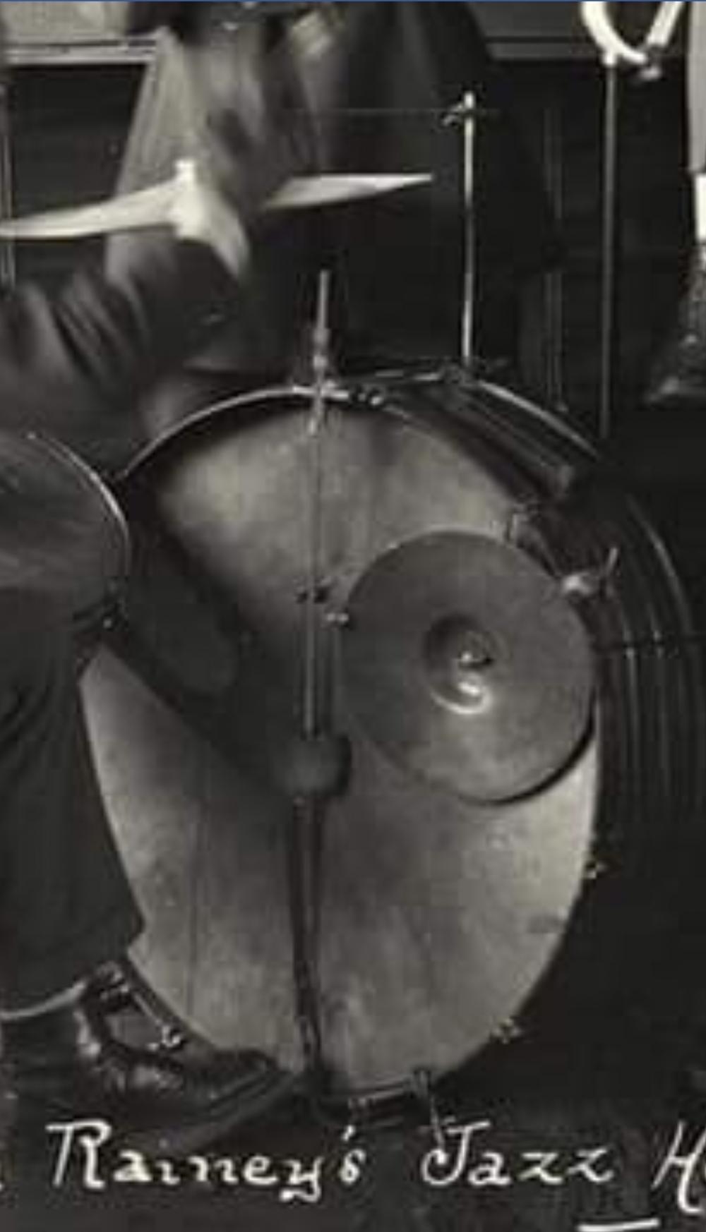Granto, Yes, one of these days I will be shamed into starting a thread about old pedals. For all the Ludwig pedal fans I can really recommend Steve Zemanek's (SAZ) new book on Ludwig pedals from 1909 to 1969. I am not sure if he has posted about it on this forum, but it is a great book and a real labor of love. Here are some more photos from the "what were they thinking" category. By the way, the Ma Rainey photo is one of the best views of that pedal (and drum set) since the drummer has his left foot on the pedal. I wonder if he played with his left foot and moved the snare drum or actually played this way. Nice throne too.
