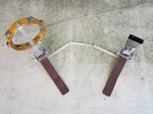 This is cropped from a 1922 publicity photo of Ma Rainey and her Jazz Hounds. What's the deal with this bass drum pedal? It looks like a little cymbal clutch on the top of a long rod that goes through the beater, but without a cymbal attached. Is this some sort of bass drum / sock cymbal combo pedal?