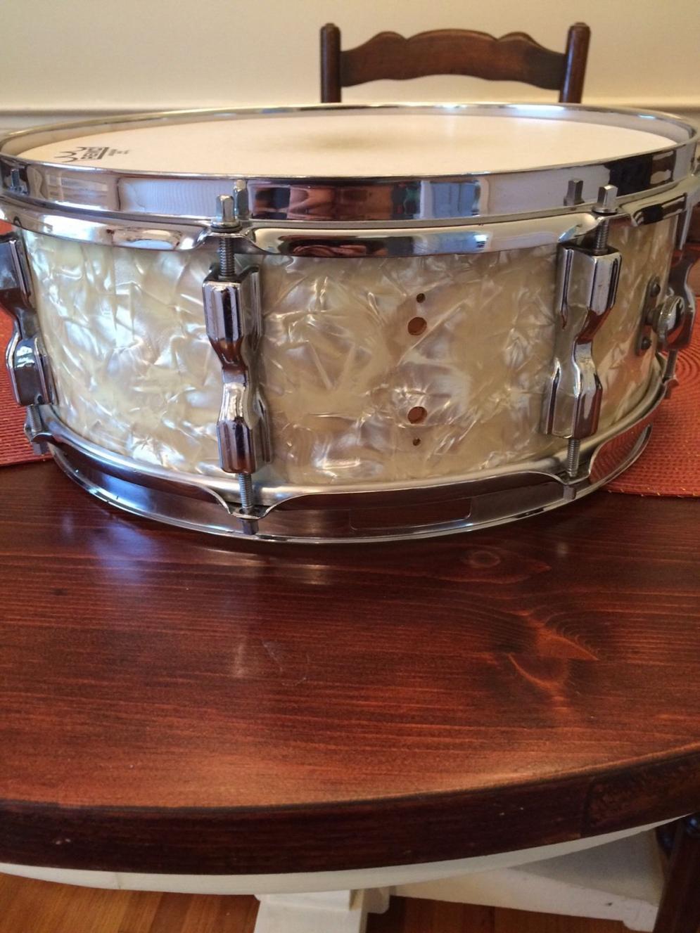 Looks most like Tama lugs from the 80's, but I've never seen one of those in white marine pearl. Anyone recognize this drum?