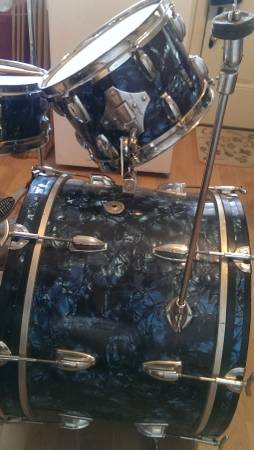 On a related note, I have a very early Pearl President kit that seems to take the 3-hole mufflers like these Rogers copies (it's missing its mufflers). I thought it had been modified by a previous owner from a 2-hole original but then I found a matching kit that had the same 3-hole pattern. So now I'm on the lookout for the correct mufflers for my President kit. It needed a whole ton of other work but the finish was too cool to pass up and it had no extra holes anywhere...