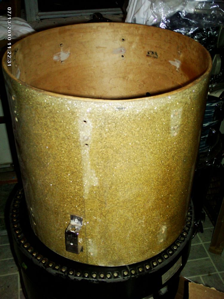 That's what happens when you use a bottomless floor tom as a carry-all for cymbals, hardware, and smaller drums. :) I'd bet money that the inside of the bass drum from this kit (wherever it is) is in similar shape.