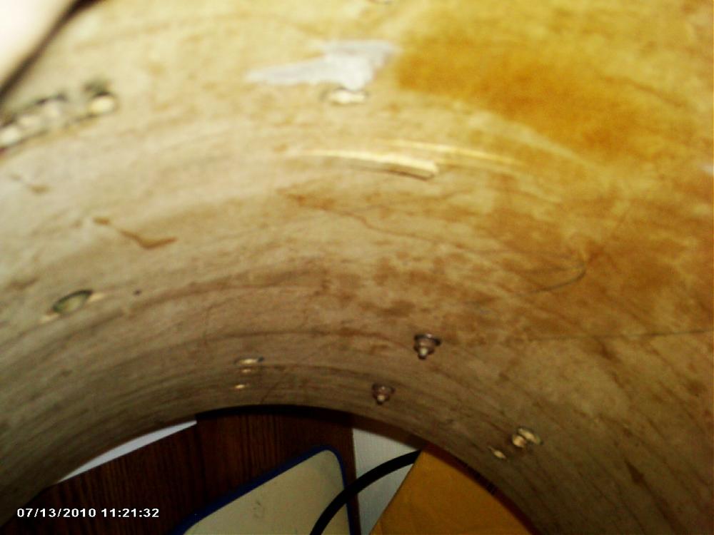 The inside of the shell was hit by a cymbal edge??? Hmmmm