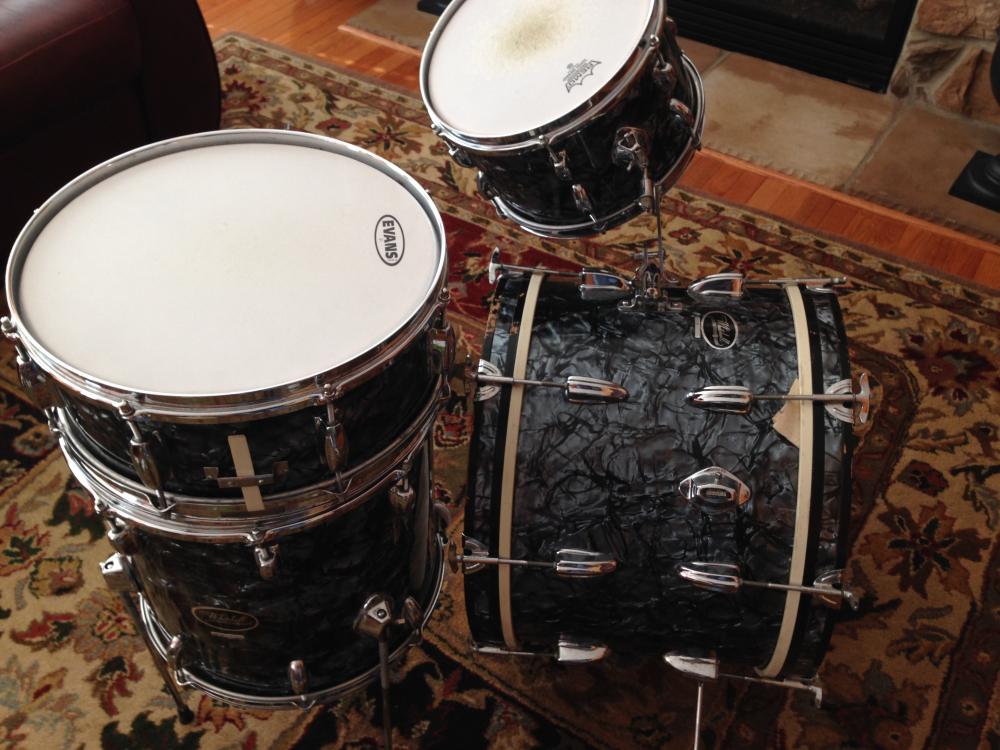 It occurs to me that these little kits with the thin shells and re-rings are a great example of a happy accident - the goal was "cheap", while the Big Four couldn't stoop to making such flimsy shells. So now we have this ~other thing~, wicked wraps and so often a really pleasing bouncy sound, sometimes even with original heads, dare I say...but it's those extra-thin shells that make the MIJ sound unique.