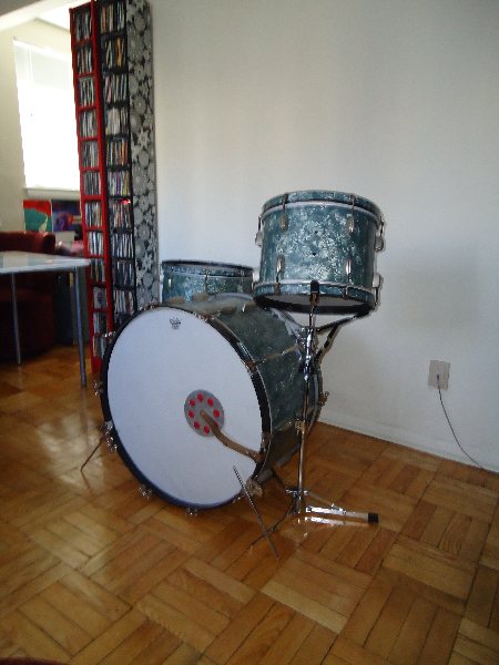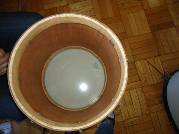 i have a set of radio kings with wood hoops that i've always wondered about. it's the aluminum cloud badge and the mufflers which i took off years ago are reddish. hard to tell. but was wondering if people could chime in on whether it's pre or post-war. or just how slingerland went about things in those days. haven't seen any other kits in this finish and not many with wood hoops that weren't bombers.