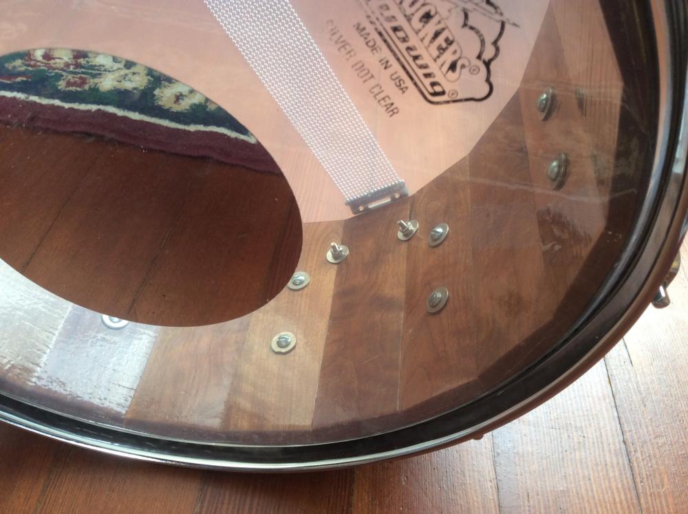 I hate that someone used a lug not designed for floating head hoops though. They do not extend far enough out to pull the hoop evenly over the cylinder. It creates a splay that pulls the hoop towards the center of the shell instead of down the shell. This will bend the ears and eventually the hoop as well as make it very hard to fine tune if at all.