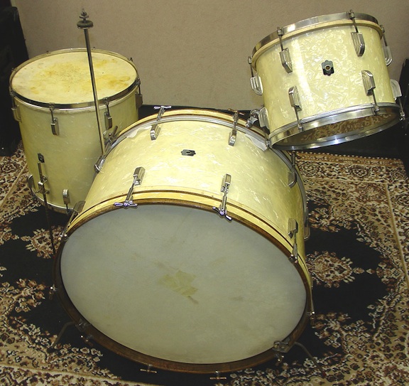 I owned the Leedy kit at one point and sold it to a buddy of mine when I bought my house. I was thinking of offering him my Slingy as a trade to get it back. I love my Slingy kit, but I most certainly miss my Leedy kit. Both kits are in similar (and great), un-molested shape and I also have 2 other kits with 22" bass drums.