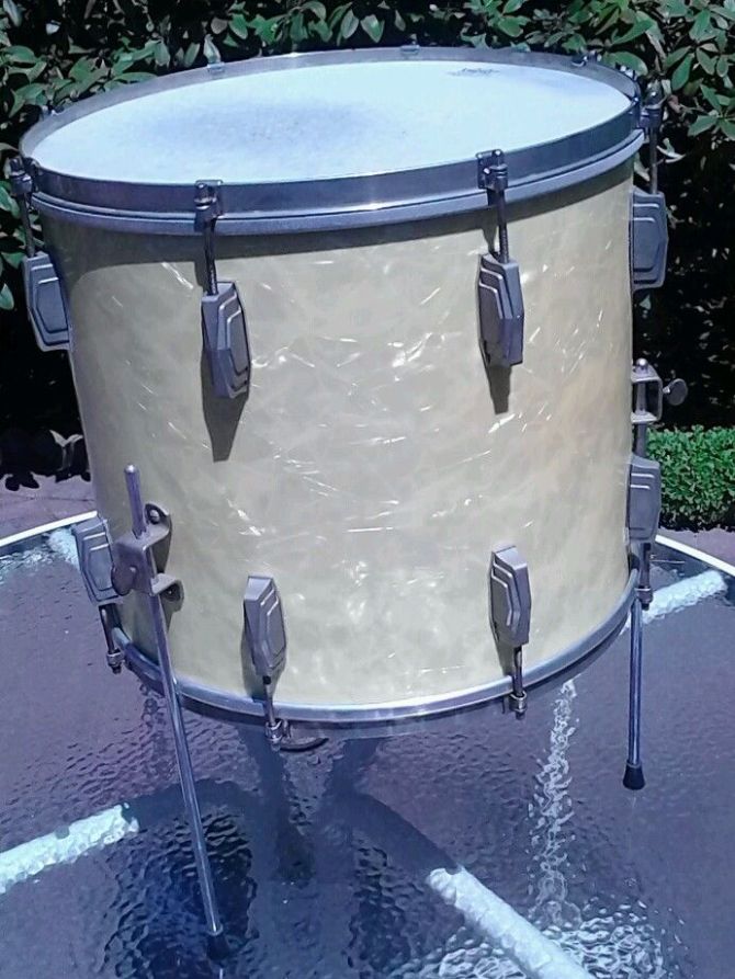 Hello, I'm new to this forum and was hoping to have better luck in buying the last "piece of the puzzle" drum for a kit I'm putting together. I'm fortunate enough to have a 1941 WMP snare, a 1938 WMP 14x28 bass drum, and a 1938 tuneable WMP 9x13 tom. Around a month ago, I hesitated buying a floor tom and the old saying came true that if you snooze, you lose. Anyway, I am looking to complete my WMP kit with a floor like the picture I will attach (this is the one I let go btw). Hopefully someone might have or come across a 14x16 floor. If you do, please let me know. Thank you!