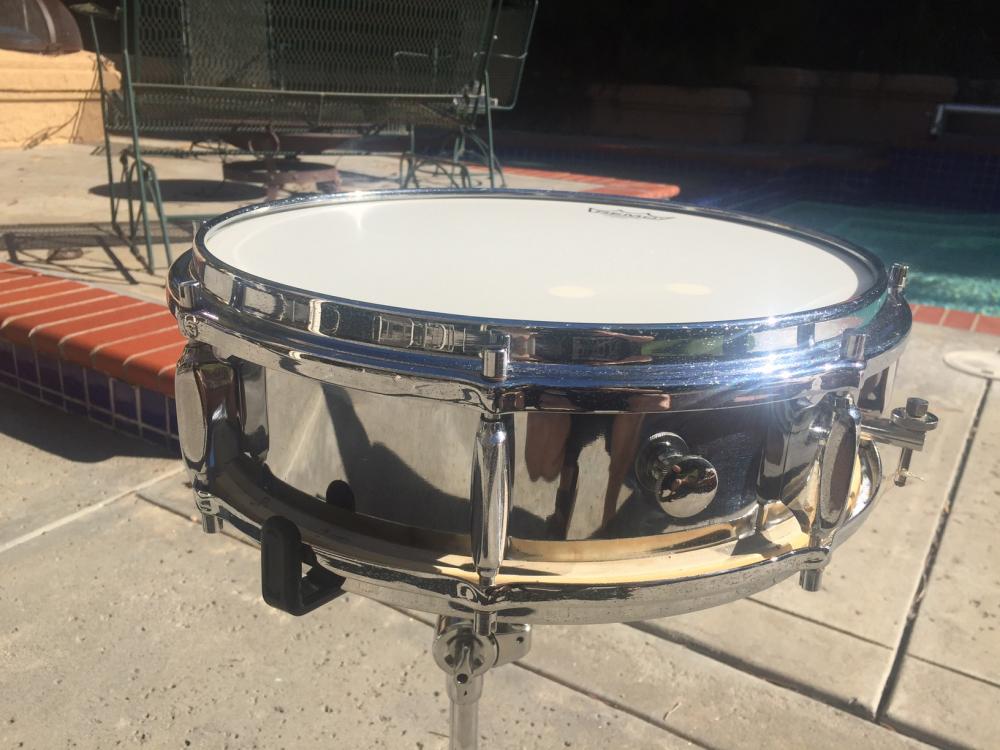 Anyway, here's a couple of pictures. The snare mechanism is original and works but the round plastic cover is missing. Chrome isn't perfect but very good player grade and it sounds great. It has the original snare wires.