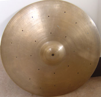 this 2100g, 20" Zildjian came along with a couple of drum kits I bought the other day, the cymbal is from the 50's I believe, but is it possible to determine the specific year by using the stamp and I assume that the holes are factory drilled so I also wonder what this model is called and how much the value is? There's a bit of a keyhole but otherwise in a good shape with no cracks and the sound is fantastic? Also got a pair of nice sounding 14" Vibra Zanki from the 60's or 70's in this deal that truly was a bargain.