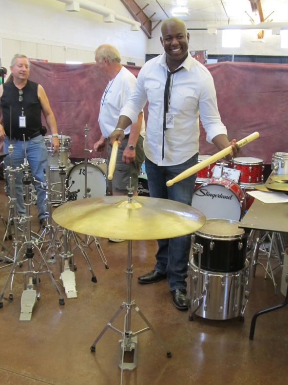 Oh Yeah....I eyeballed both of those cymbals right away. Nice Hi-Hat set! Ha Ha...that's Adam (great guy) from the Evans G-14 booth with those huge sticks! Great pic! Cool1