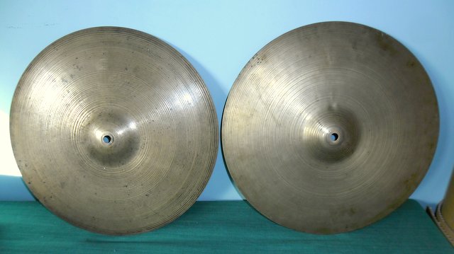 I got these 15" hats with a kit yesterday. The stamps are 60s right? The bottom cymbal has a small dent at the base of the bell and the top cymbal has an area of shallow elongated impressions. They look like they have always been there to me. Is it common to see these flaws or do you think the dents are user related?