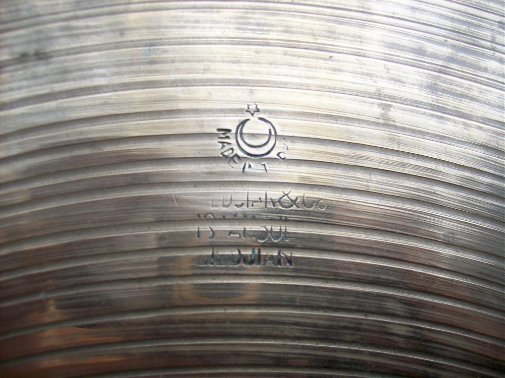 The cymbal has been signed under the bell (as normal) it has deep wide lathing on the top surface, anyone got any idea of age and the stamp?