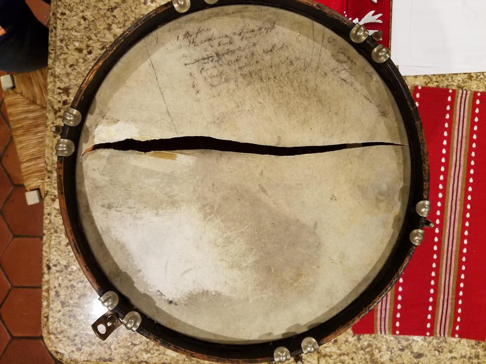 Limited market for these type of drums. Old though. Very old. Love to know if you can make out the words on the head..
