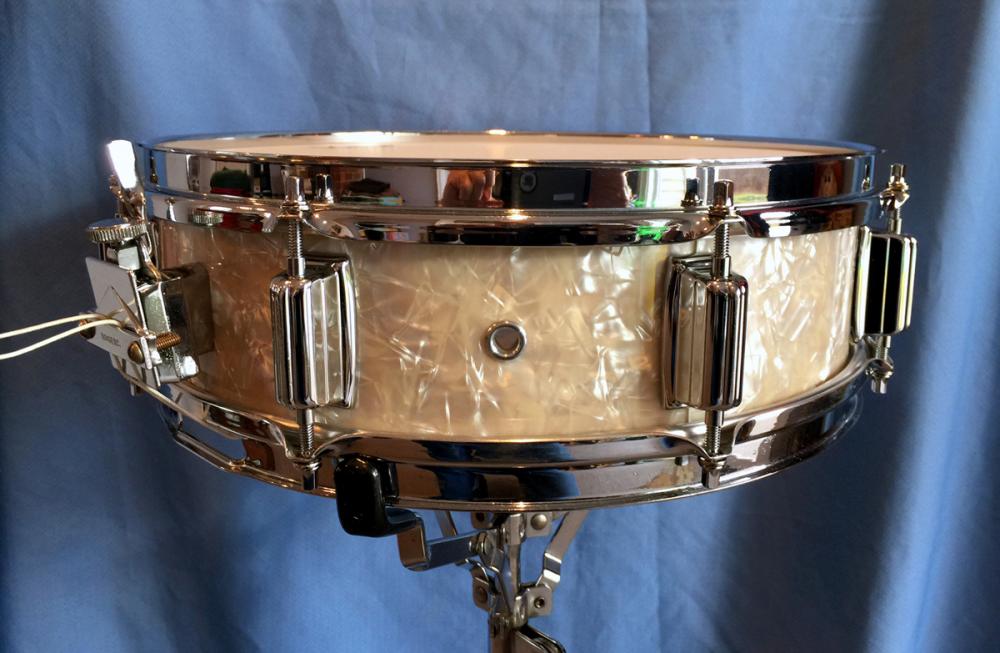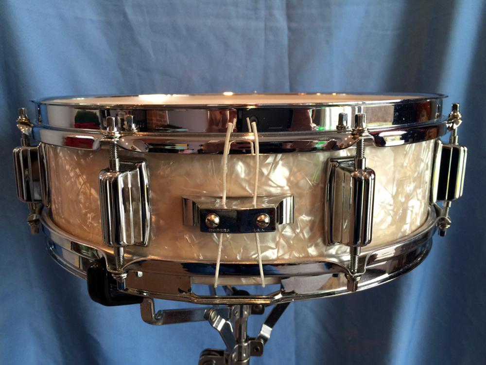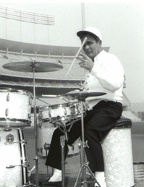 Just saw a YouTube video (music with a slideshow) of Gene Krupa's "Drum Boogie" from 1959. At 7:20 or so into the video, there's a picture of him playing his kit in what looks like Yankee Stadium. I'm sure the picture was more recent than 1959, but it looks like his snare is a Dynasonic, with the black stripe clock face strainer. Can anyone else see that? Never would have thought....