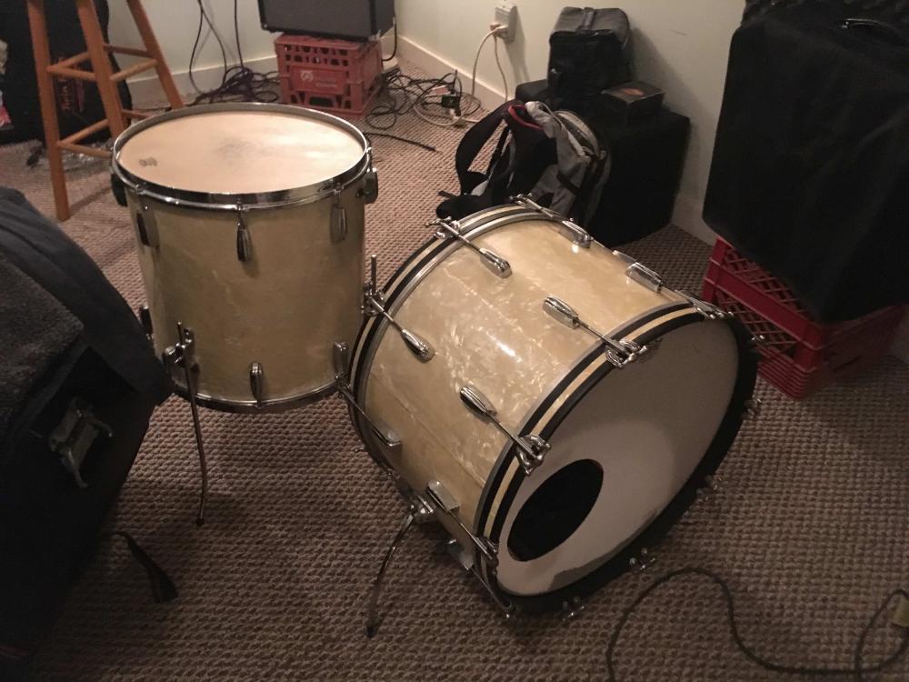 On my floor tom, the thumb screws aren't original, so the 12" or 13" tom you have doesn't have to be perfect. Could even be a different badge (did the toms have badges back then, btw?). I just want the lugs and finish to match. I believe I have streamline lugs.