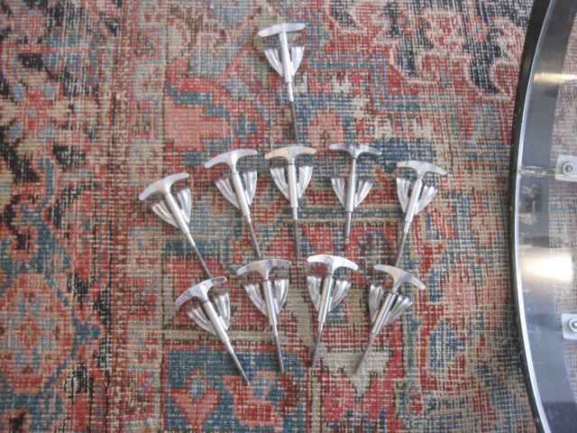 All the hardware is in great condition - 19 of 20 tension rods are present, I've included 1 aftermarket which is similar but not a vistalite tension rod. the 20 claws are there and correct, in great shape. The spurs are correct and rubber tips are in great shape.