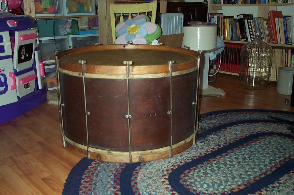 I have a similar bass drum. Mine has "art-gold" plated steel t-rods and clips. Does anybody know what kind of clear coat was used on the shells during the Indianapolis factory period? Shellac? Lacquer?